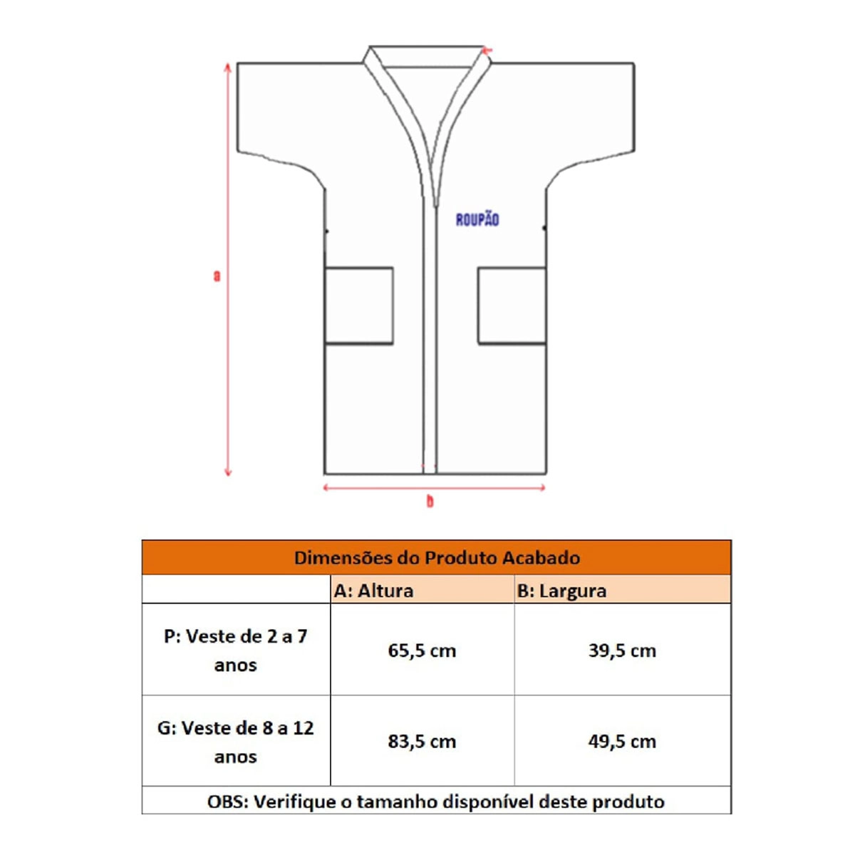 O roupão aveludado da coleção Frozen estampa as lindas irmãs Anna e Elsa junto com o fofo boneco de neve Olaf rodeados por flores e corações, exibindo todo o encanto dos filmes. Embarque em um mundo de diversão e alegria na hora do banho, tudo isso com o conforto e a qualidade que só os produtos Lepper oferecem! Para os pequenos aproveitarem ainda mais nossos roupões, pensamos em uma modelagem inteligente com dois tamanhos: P veste de 2 a 7 anos e G de 8 a 12 anos. Agora, além da tecnologia da felpa que não puxa fio e das estampas vibrantes, os roupões podem acompanhar as crianças por mais tempo! O roupão aveludado é macio, aconchegante e apresenta o verso felpudo, o que garante uma absorção ainda melhor. Essa é a magia dos produtos Lepper na rotina dos pequenos.