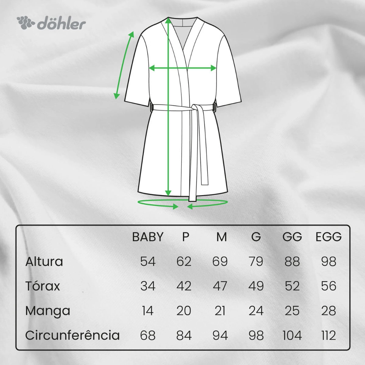 - O Roupão Infantil Velour é indicado para as seguintes idades: tamanho P de 3 a 6 anos, tamanho M de 7 a 10 anos, tamanho G de 11 a 12 anos, tamanho GG 13 a 15 anos e o tamanho EGG acima de 16 anos;