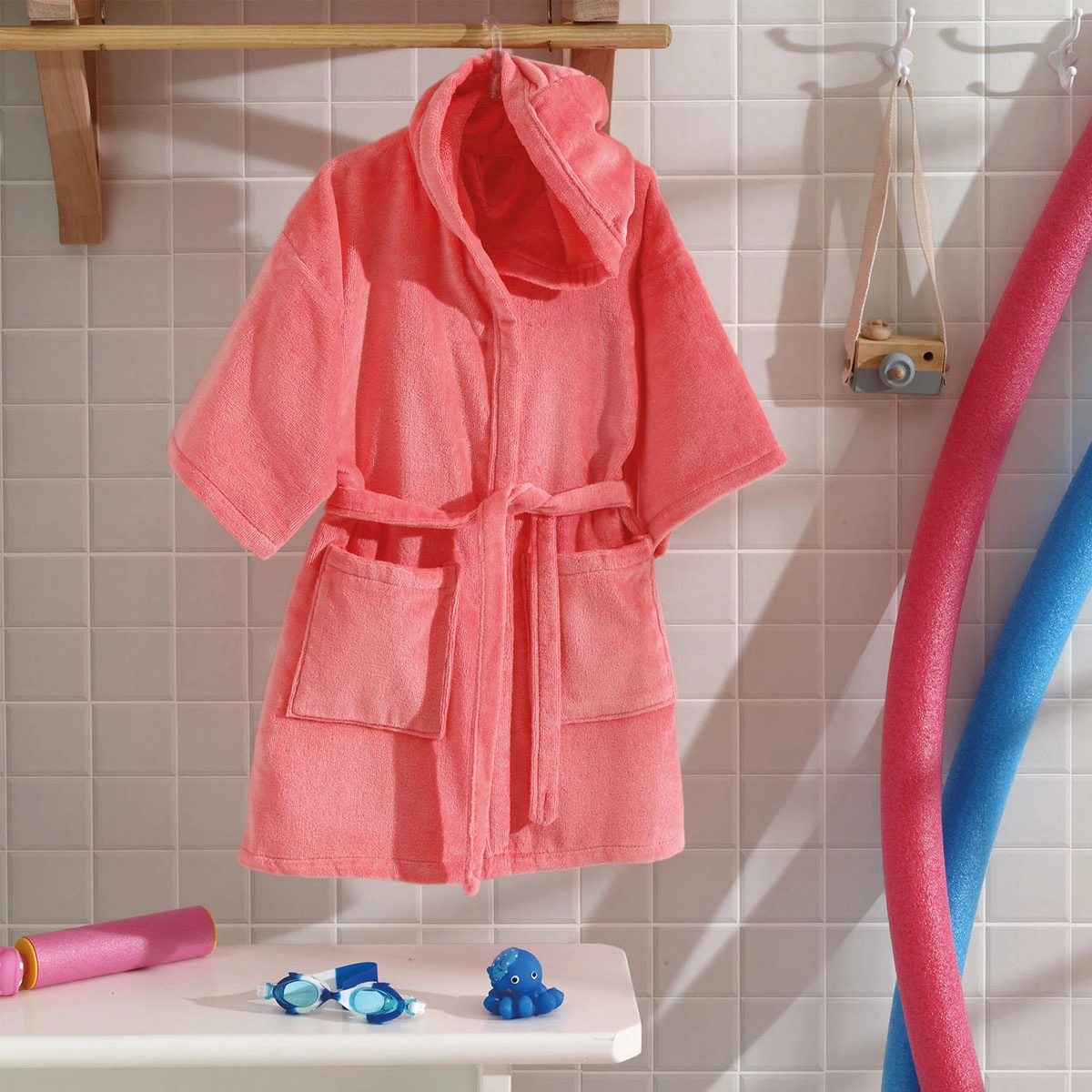 O Roupão Infantil Velour é a escolha perfeita para quem busca conforto na hora de vestir seu pequeno após o banho. Com sua composição 100% algodão e a gramatura de 280g/m², o roupão proporciona uma experiência única de toque macio e suave, graças ao acabamento felpudo aveludado e possuindo modelagem moderna. Além disso, o roupão conta com um capuz imponente, cinto para amarração na cintura e dois bolsos frontais para praticidade e funcionalidade com sua paleta de cores atual, alegre e delicada.