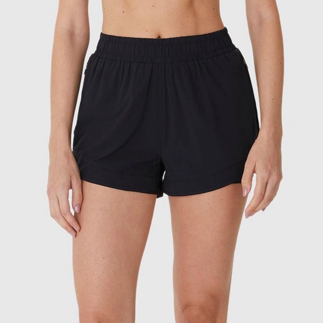Shorts Esportivo Feminino Duplo Bolso Fecho Zíper Em Tafetá Com Elastano
