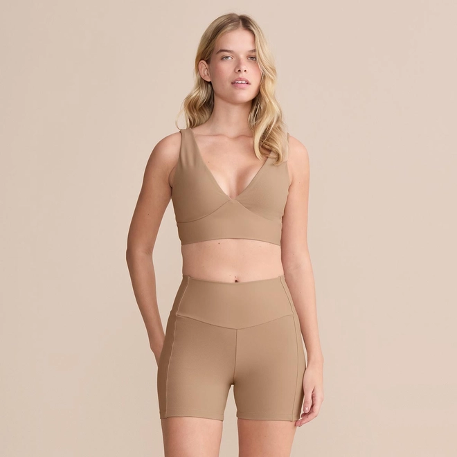 Tecido com textura levemente canelada na superfície e avesso com toque macio, possui média compressão e alta elasticidade, oferecendo ajuste firme ao corpo, com liberdade de movimento durante os treinos. A poliamida SENSIL®, reconhecida por sua qualidade superior, durabilidade e toque suave, adiciona sofisticação e conforto. Conta com proteção UV 50+, ideal para atividades ao ar livre, e tecnologia Easy Care, que facilita os cuidados diários ao reduzir a necessidade de passar. O processo de tingimento com economia de água reforça o compromisso com a sustentabilidade.