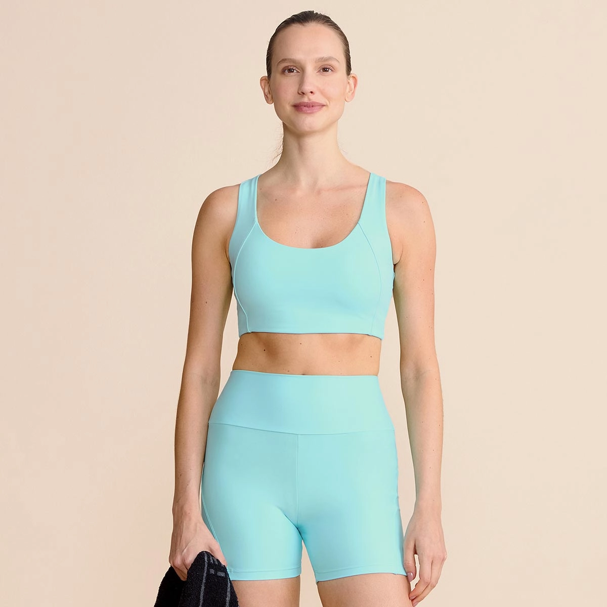Tecido de alta compressão, com superfície lisa e toque suave, oferece ajuste confortável ao corpo e liberdade de movimento durante o uso, com zero transparência. Desenvolvido com elastano sustentável LYCRA® Ecomade bioderivado com tecnologia QIRA®, produzido a partir do milho com 70% de conteúdo renovável, contribui para a redução de até 44% na pegada de carbono em comparação ao elastano convencional. Conta com proteção UV 50+ e tecnologia Easy Care, que facilita os cuidados diários ao reduzir a necessidade de passar. O processo de tingimento com economia de água reforça o compromisso com a sustentabilidade.