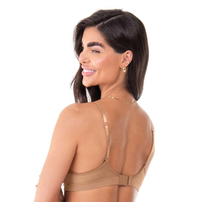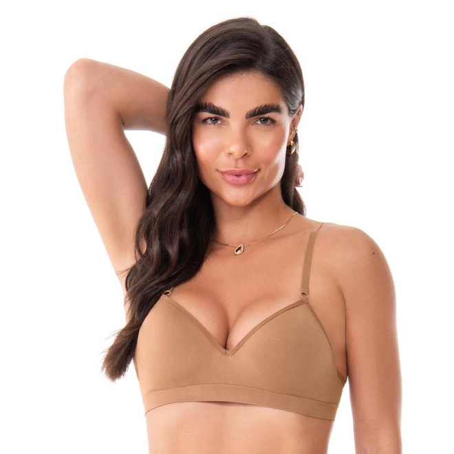 Este sutiã apresenta modelagem triangular no busto, ideal para usar com blusas, camisas ou vestidos com decote amplo.