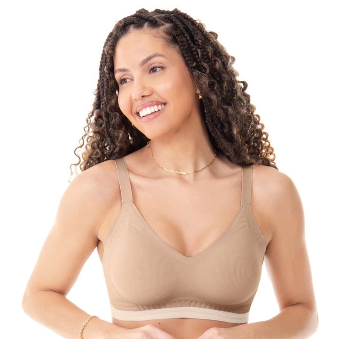 Sutiã Laser Termofusionado com bojo, alças largas e reguláveis, laterais amplas e estrutura reforçada, oferecendo suporte superior. Um modelo de sucesso agora repaginado, sempre unindo estilo e máximo conforto.