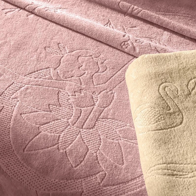 O grande diferencial está no efeito visual e tátil do jacquard em alto e baixo relevo, que cria desenhos encantadores diretamente no corpo da peça. Esse acabamento confere textura e sofisticação ao produto, ao mesmo tempo em que estimula o tato e a imaginação infantil. Além disso, o verso felpudo garante excelente absorção, tornando essas toalhas ideais para o uso diário.