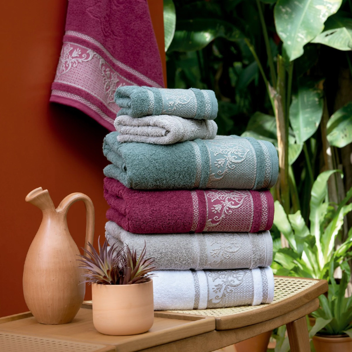 Suas cores possuem brilho natural que as realça de tolhas comuns, além de seus tons suaves que transpiram elegância e paz a seu ambiente.