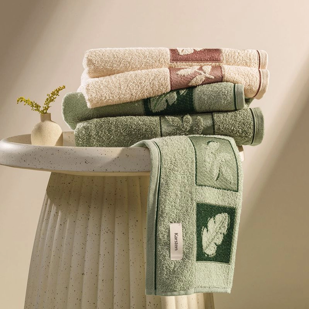 A toalha Quebec é um convite para uma pausa com conforto. Feita com a tecnologia exclusiva Softmax, ela passa por um processo de pré-encolhimento, que preserva a estrutura do fio, potencializando a absorção e permitindo um toque mais macio. Seu corpo mantém uma cor sólida, enquanto a barra, feita em jacquard, apresenta desenhos de folhas que remetem à natureza. Com tons de verde e naturais, a toalha Quebec traz frescor e aconchego para o ambiente.