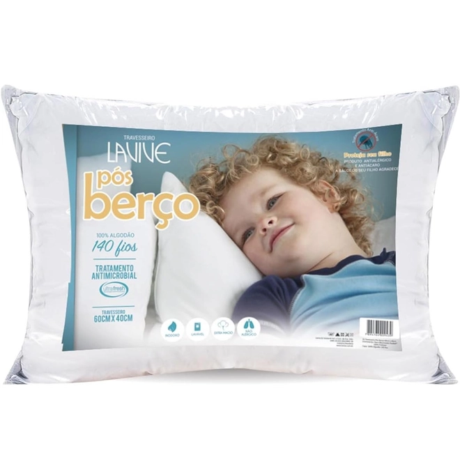 Travesseiro Infantil Flexball 60cm x 40cm Antialérgico 100% Algodão Lavive