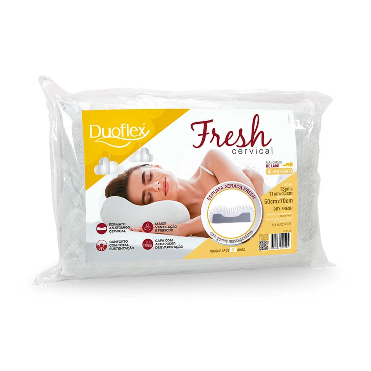 Travesseiro Fresh Cervical Duoflex Ortopédico Massageador Altura 13x11x13 cm Para Fronha 50x70 cm Antiácaro 100% algodão