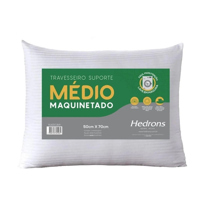 Travesseiro Maquinetado Suporte Médio 50cm x 70cm - Branco Ref: TR0090.1