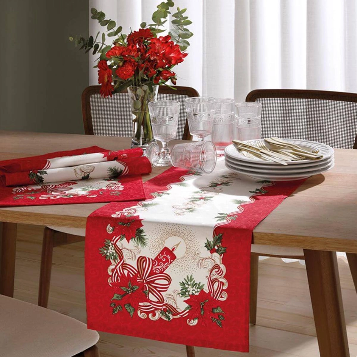 O Caminho de Mesa Dohler Athenas Natal é a escolha ideal para dar um toque festivo e encantador à decoração da sua mesa. Sua estampa reúne elementos tradicionais do Natal, criando uma atmosfera alegre e acolhedora que transforma cada detalhe em celebração. O barrado vermelho contrasta lindamente com o fundo claro, valorizando a decoração com cores vibrantes e cheias de vida.